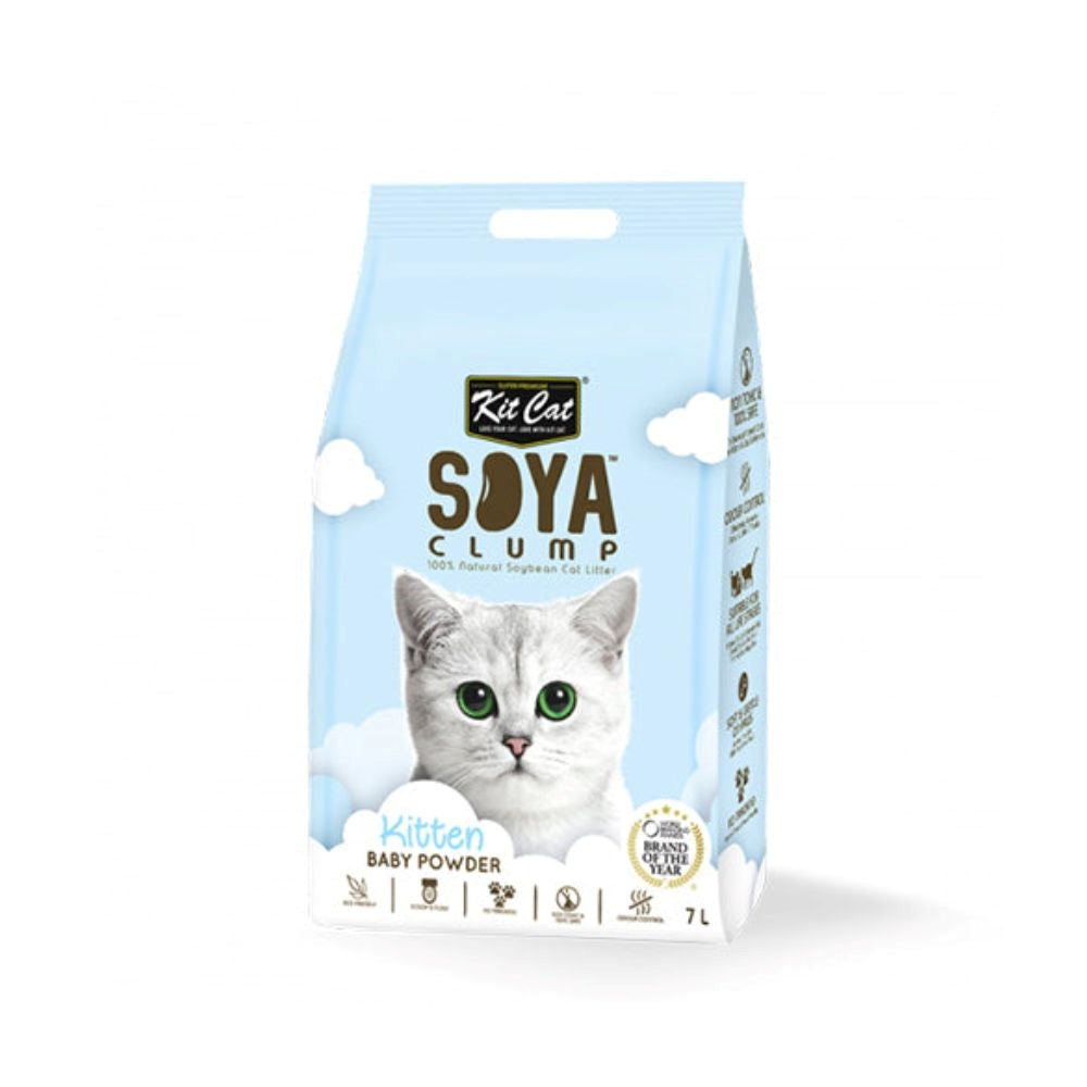 نظافة ناعمة تناسب القطط الصغيرة! كت كات رمل الصويا برائحة بودرة الأطفال مخصص للقطط الصغيرة والحساسة، بتركيبة لطيفة على الأرجل ورائحة خفيفة محببة. يكوّن تكتلات بسرعة وسهل التخلص منه.
