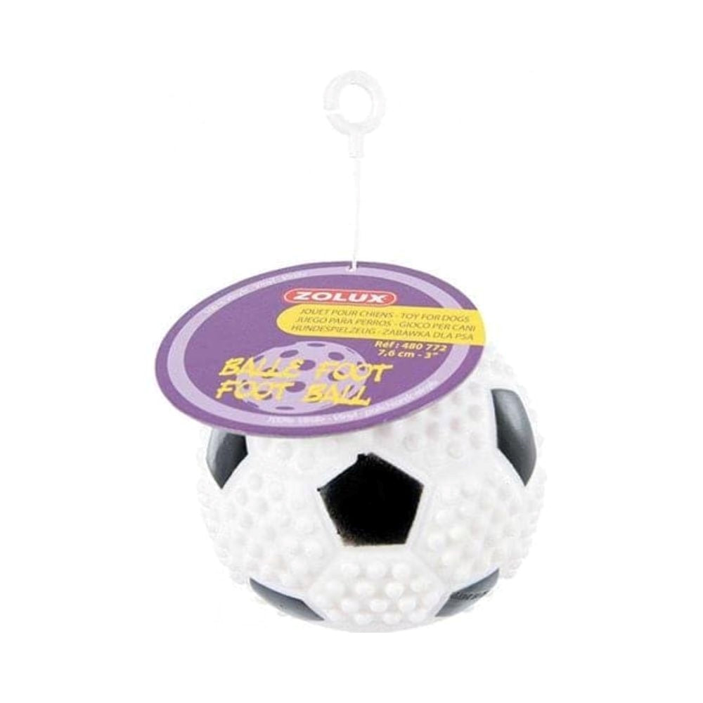 لعبة مطاطية مرنة من زولكس على شكل كرة القدم، مثالية لتسلية الكلاب وتحفيز نشاطها، مزودة بحبل للتعليق أو الرمي، مصنوعة من مواد آمنة ومتينة.