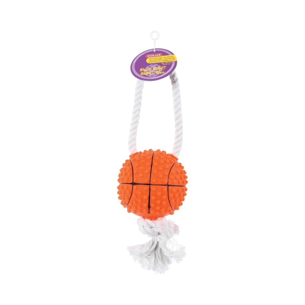 لعبة مطاطية متينة من زولكس على شكل كرة سلة، مع حبل تعليق لتثبيتها داخل القفص، مثالية لتنشيط الطيور وتوفير ترفيه مستمر.