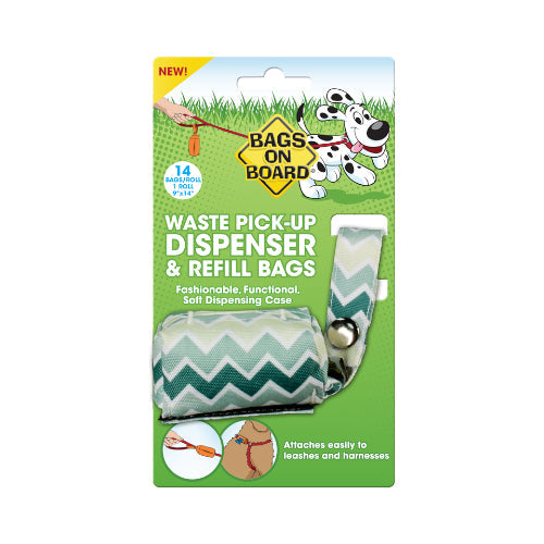 حامل أكياس فضلات باقز أون بورد مصنوع من قماش قوي وعملي، بتصميم مقلم بلون أخضر أنيق. الحامل سهل الحمل ويمكن تعليقه على الحزام أو حقيبة التنزه، لتسهيل حمل أكياس الفضلات أثناء المشي أو الرحلات، مع إغلاق آمن يمنع سقوط الأكياس.