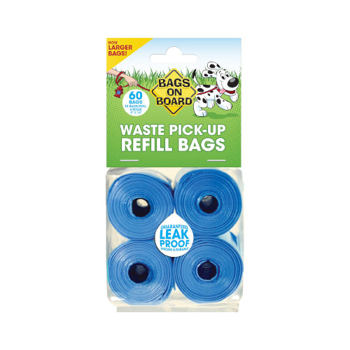 أكياس فضلات باقز أون بورد بتصميم قوي وعملي، مناسبة لجمع فضلات الكلاب بطريقة نظيفة وسهلة. العبوة تحتوي على 60 كيس بلون أزرق جذاب، مصنوعة من مواد متينة تمنع التمزق وتحافظ على النظافة أثناء المشي. رائحة محايدة لتجنب الروائح الكريهة.