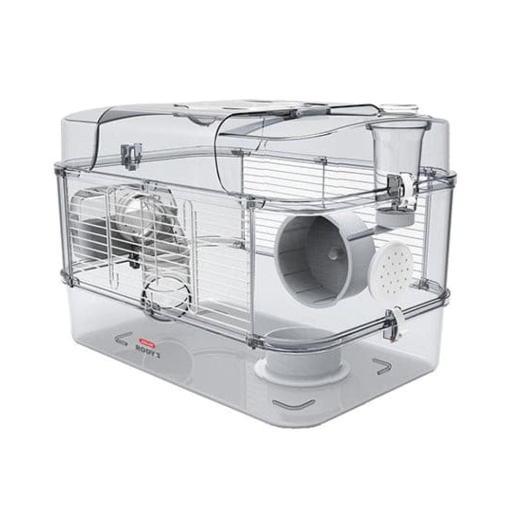قفص أنيق وعملي للقوارض الصغيرة بلون أبيض، يوفر مكان آمن ومريح للحيوان، مع تصميم يسهل التنظيف والصيانة.
