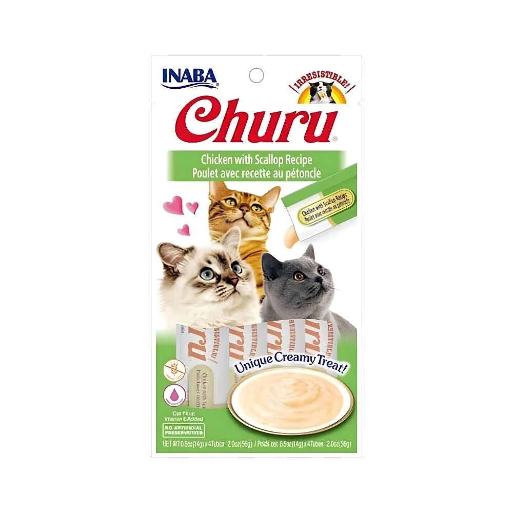 لو قطتك تحب الطعم المميز، "اينابا تشورو هريسة دجاج مع محار" 4 عبوات وزن كل عبوة 14 غ، مزيج غني بالبروتينات الطبيعية.