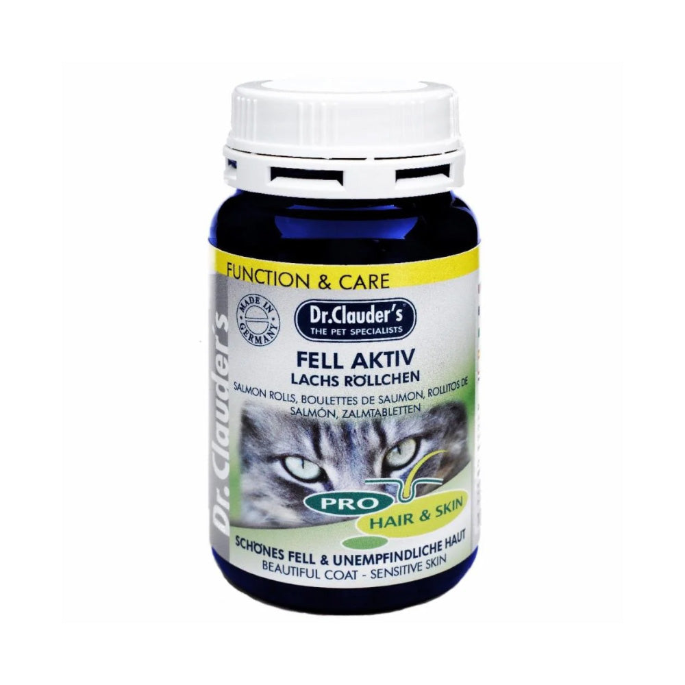 مكافأة رولس شهية بنكهة السلمون، معززة بمكونات تدعم النشاط والحيوية وتحسن صحة الفرو، سهلة التقديم وتناسب كل الأعمار.