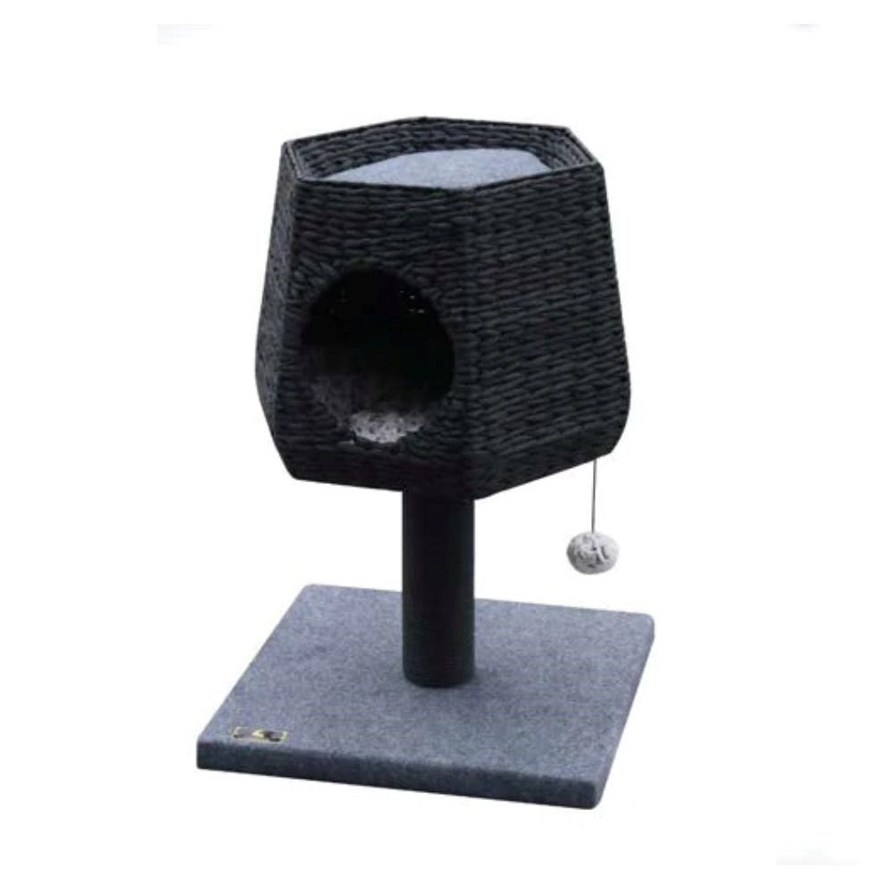 خداشة مريحة مرفقة بكوخ بقاعدة مربعة، تتيح لحيوانك اللعب والاسترخاء مع دعم ممتاز للأظافر والفرو.