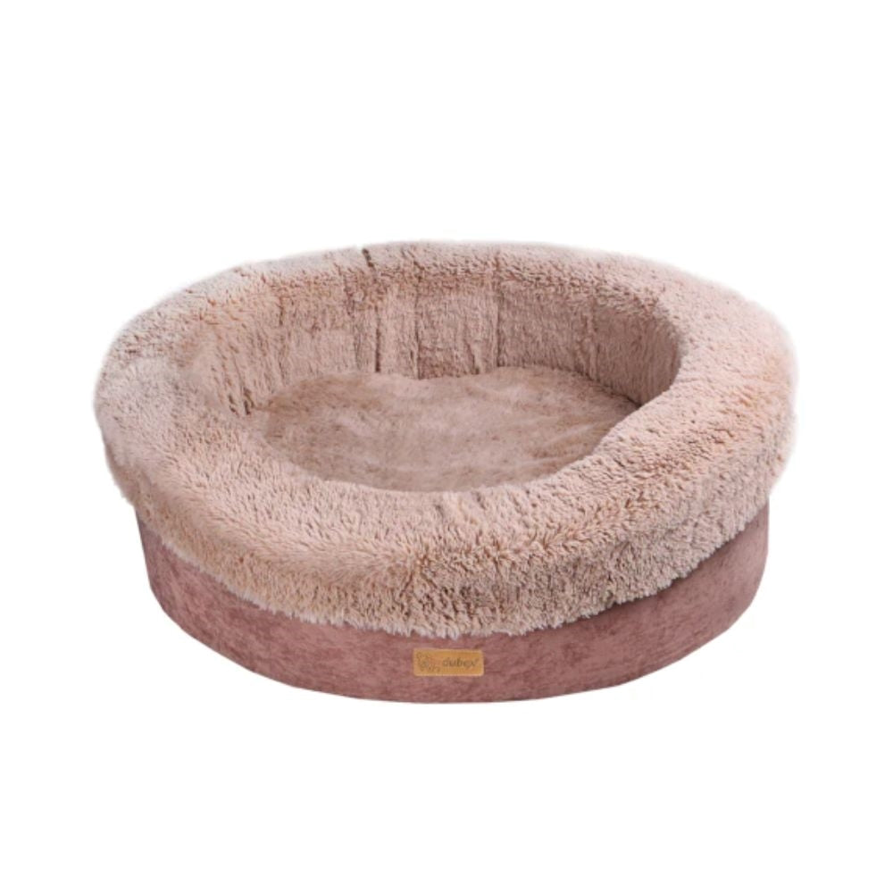 سرير دائري على شكل دونات بلون بني دافئ، يمنح حيوانك مكان مريح وهادئ للراحة.