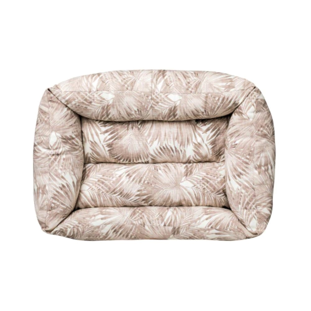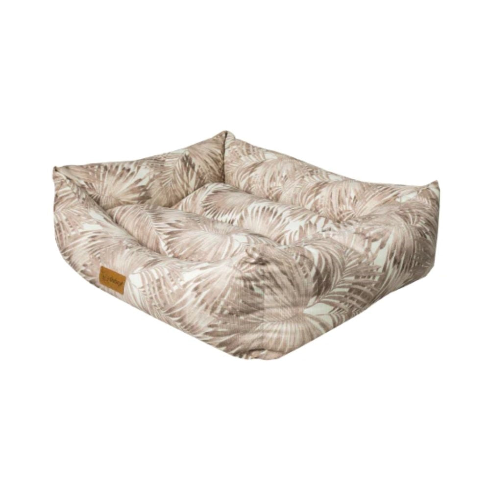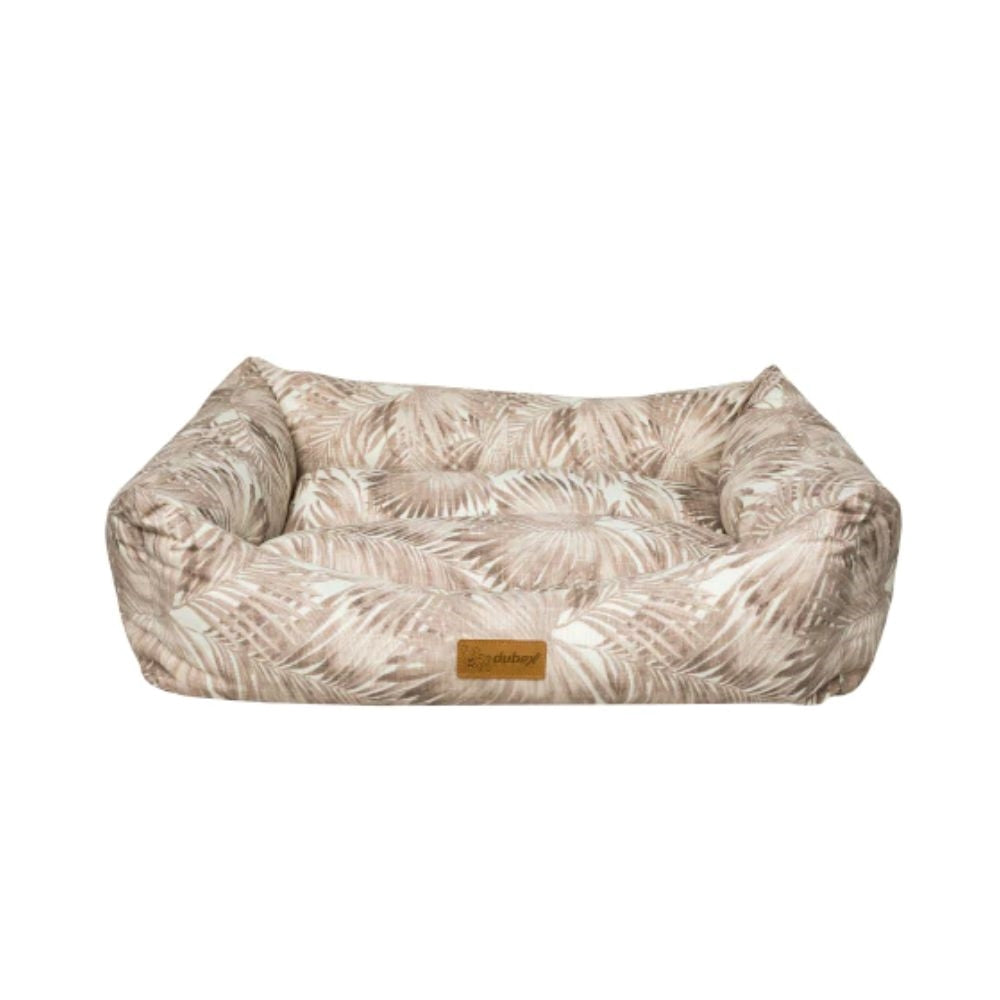 سرير مستطيل بتصميم أوراق الشجر بلون بني دافئ، يوفر دعم وراحة للقطط والكلاب الصغيرة والمتوسطة.