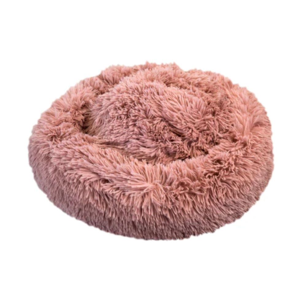 سرير دائري بلون زهري ناعم، مثالي للقطط والكلاب الصغيرة. يضيف لمسة لطيفة ويمنح حيوانك الراحة والدعم اللازمين.