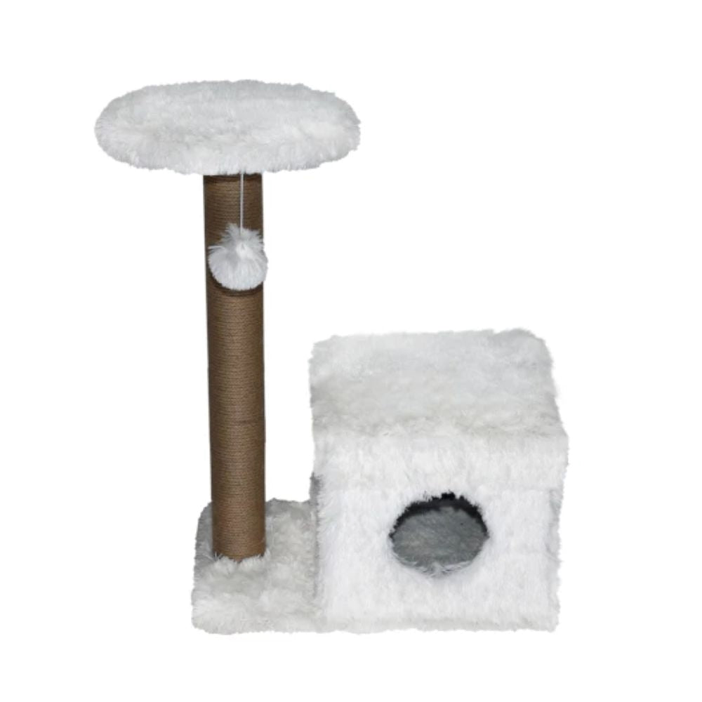 خداشة متوسطة الحجم تجمع بين بيت مريح للقطط وكرة تفاعلية بألوان متعددة لتحفيز اللعب والحركة. تساعد هذه الخداشة على تقليل الملل وتنشيط قطتك، كما توفر مكان دافئ للنوم والاستراحة.