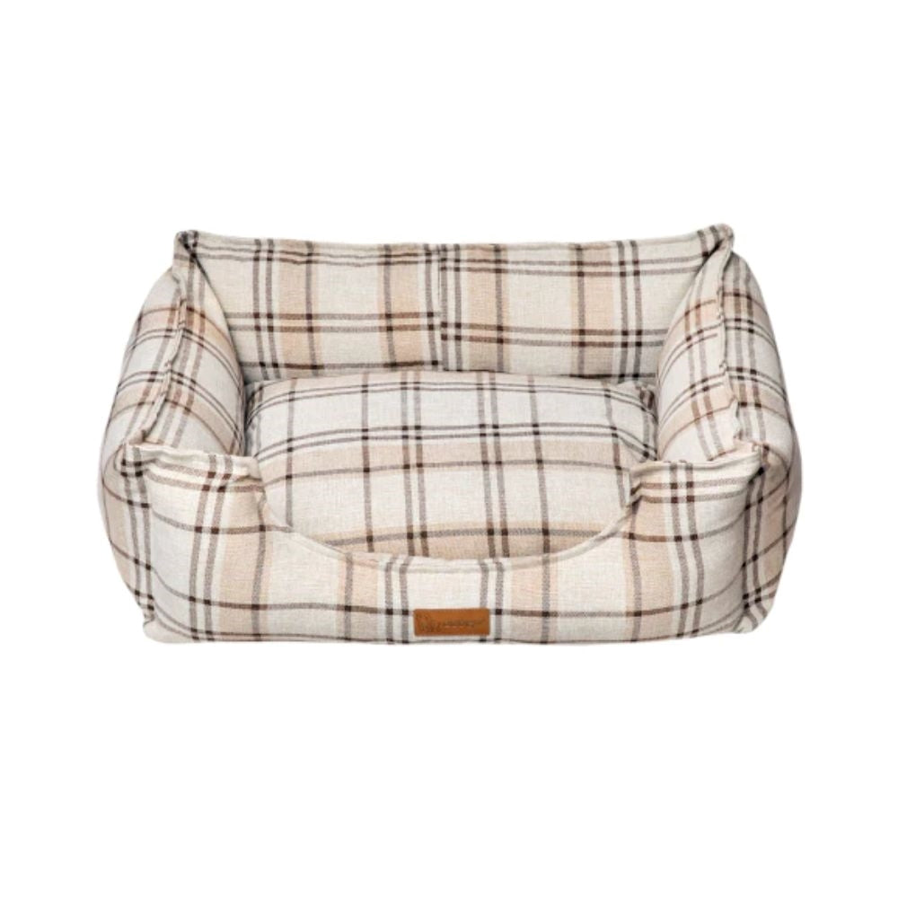 سرير مستطيل مقلم بألوان بيج ناعمة، يوفر مكان مريح وآمن للقطط والكلاب. تصميم عصري يناسب مختلف ديكورات المنزل، مع حشوة داعمة لنوم هادئ وصحي.
