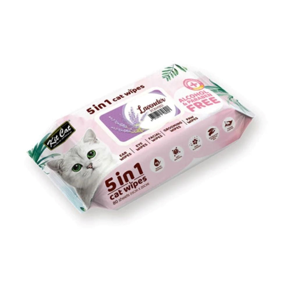 مناديل كت كات المعطرة بخمسة فوائد مع رائحة اللافندر الهادئة، تنظف وتزيل الروائح بطريقة لطيفة وفعالة.
