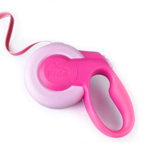 مشد أوتوماتيكي للتنزه من فيدا ام سفن بلس، لون زهري أنيق مع إضاءة LED ليلية لضمان أمان كلابك في الظلام، تصميم مريح ومتين.
