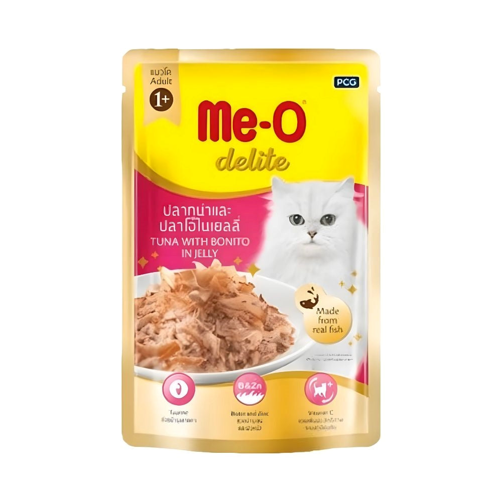 طعام رطب ميو بظروف بنكهة التونة مع بونيتو والجلي، حجم 70 غرام، يمد قطتك بقيمة غذائية عالية وطعم لذيذ.