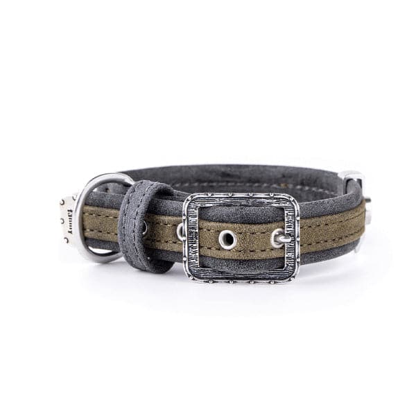 طوق جلد زيتي متوسط الحجم بقياس 45×2.2 سم من ماي فاميلي لندن، تصميم فاخر وخامات طبيعية متينة تضمن الراحة والأمان لحيوانك الأليف.
