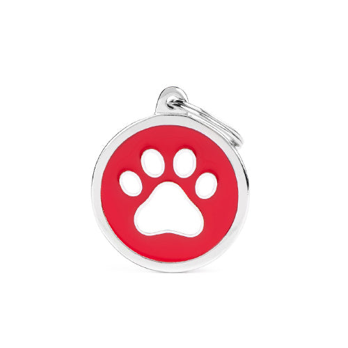 قلادة دائرية كبيرة بلون أحمر مع تصميم مخلب أبيض، تضيف لمسة جريئة وعصرية لطوق حيوانك مع خامات متينة.