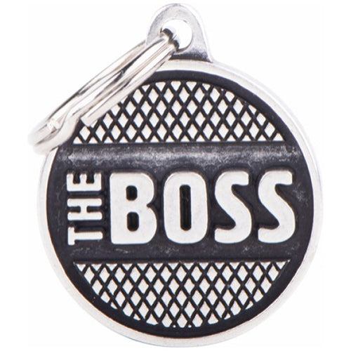 قلادة برونزية مستديرة بحجم متوسط من ماي فاميلي، تصميم كلاسيكي وأنيق يناسب مختلف الأطواق ويضيف لمسة جمالية لطوق الحيوان.