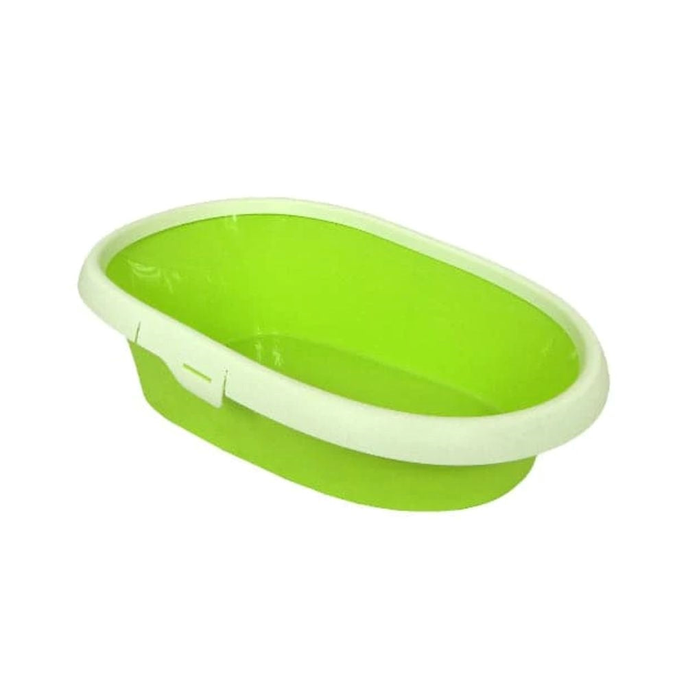حوض رمل مينو صغير من أم بي برغامو بلون ليموني مشرق، مصنوع من خامات بلاستيكية متينة مع تصميم عملي وسهل التنظيف، مثالي للقطط الصغيرة.