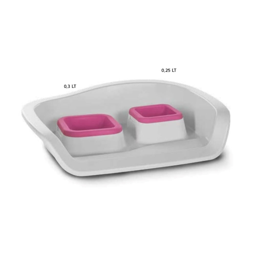 طقم صينية مع مأكلية ومشربية بلون برتقالي من أم بي برغامو، تصميم عملي يسمح بتقديم الطعام والماء بشكل منظم وسهل التنظيف.