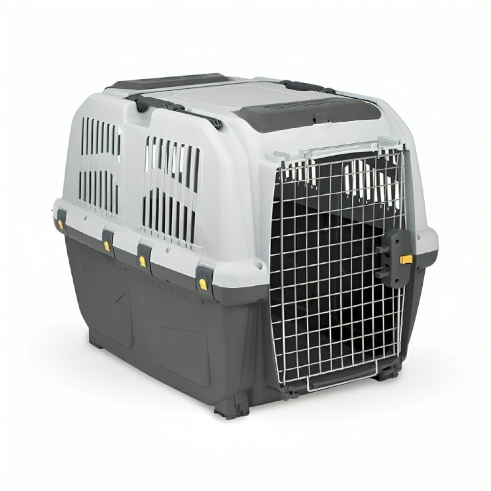 حامل تنقل بلاستيك متين بحجم متوسط مع باب حديد، يوفر أمان وراحة لحيوانك أثناء التنقل مع تصميم عملي وألوان متنوعة.