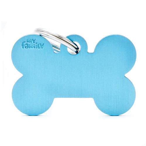 قلادة عظمة باللون الأزرق مصنوعة من الألمنيوم، خفيفة وعملية تضيف لمسة عصرية لطوق الحيوان.