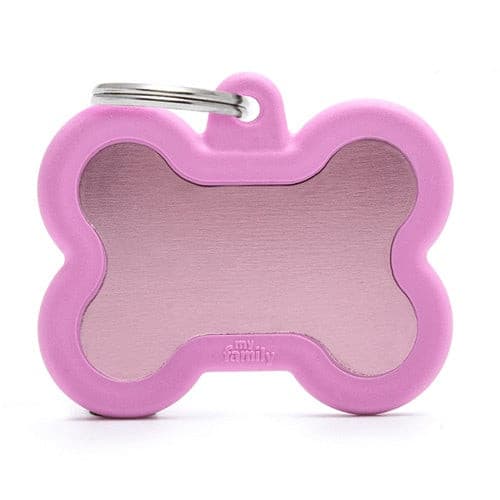 قلادة عظمة باللون الزهري مع إطار جلد أنيق تضيف لمسة مميزة وعصرية لطوق الحيوان.