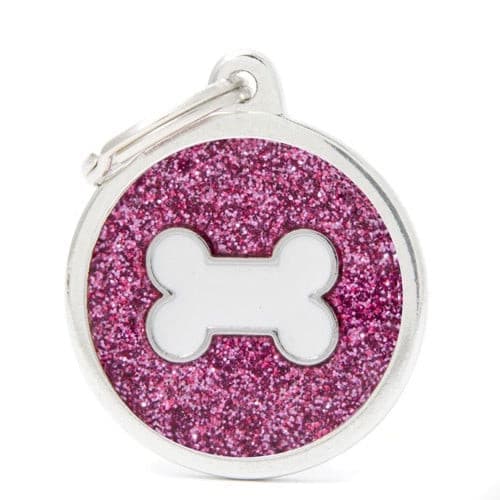 قلادة دائرية بلون وردي لامع مع تفاصيل بيضاء، تضيف لمسة أنثوية وأنيقة لطوق الحيوان.