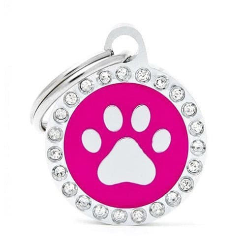 قلادة صغيرة لامعة على شكل قدم باللون الفوشيا، تضيف لمسة حيوية وعصرية لطوق الحيوان.