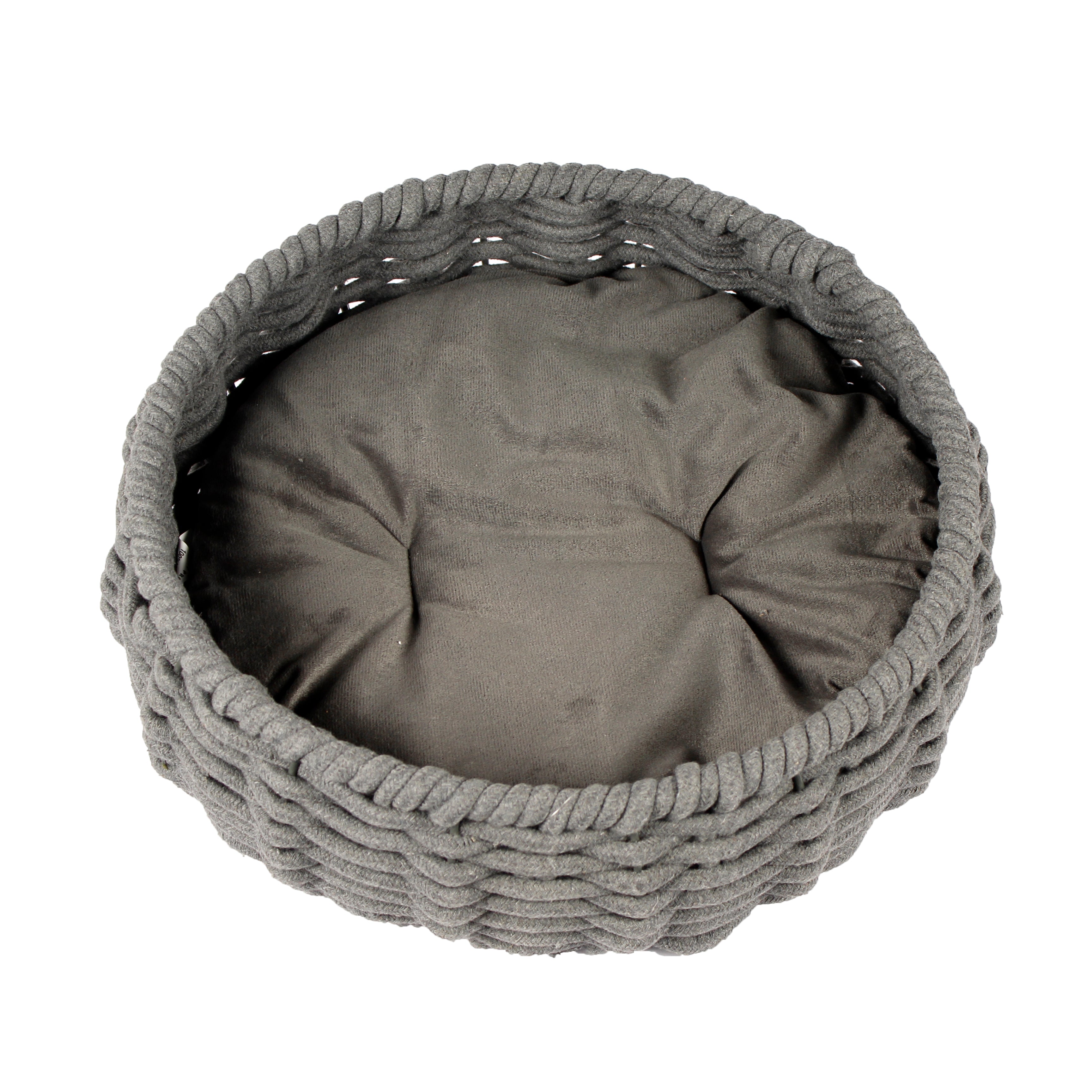 سرير وافن بيضاوي من القطن باللون الرمادي الغامق، يمنح حيوانك الأليف مكان دافئ ومريح للنوم والاسترخاء. خامات ناعمة ومريحة مع تصميم أنيق يناسب مختلف الأماكن.