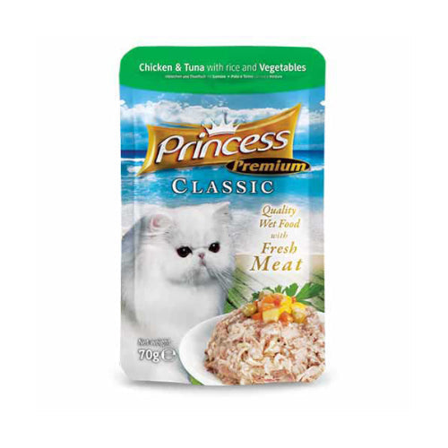 وجبة معلبة غنية ومتوازنة تحتوي على الدجاج والتونة مع الأرز والخضروات الطازجة، تقدم لقطتك تغذية كاملة ونكهة محببة مع ترطيب ممتاز.