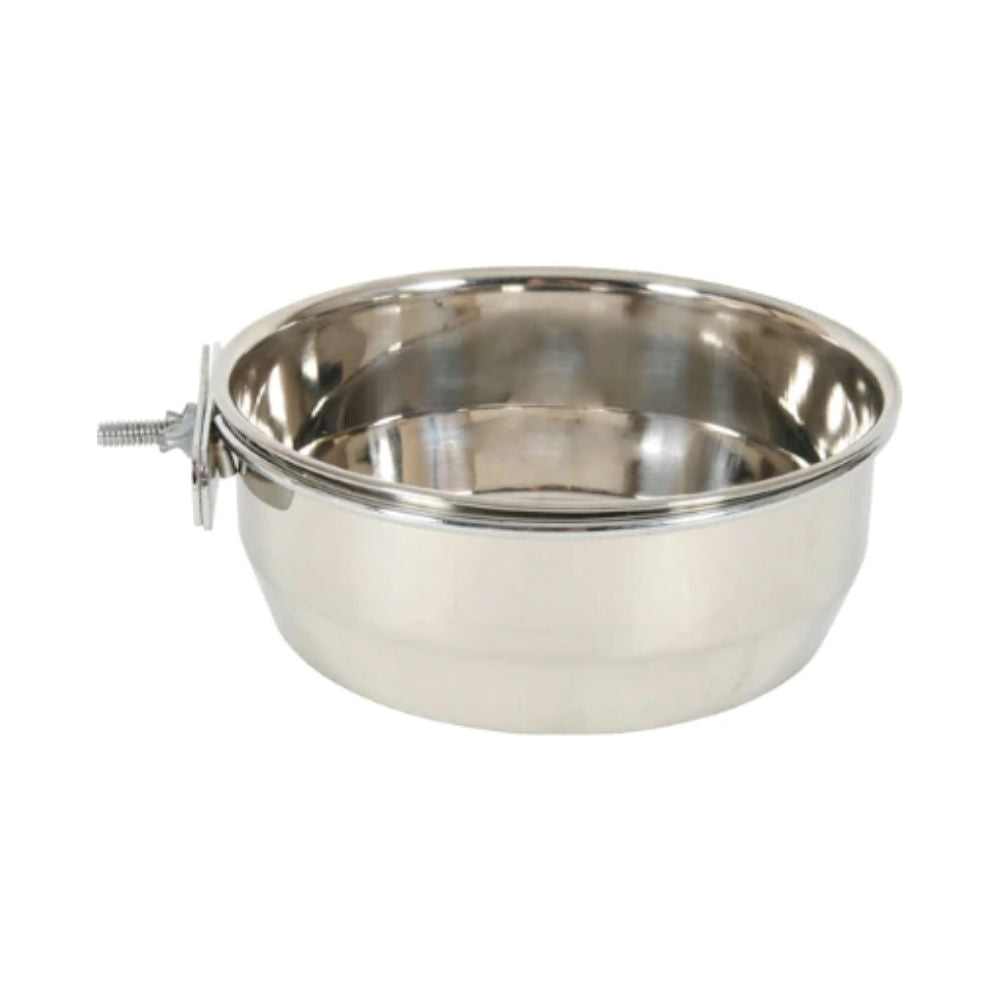 صحن عملي وقوي مصنوع من ستانلس ستيل مقاوم للصدأ، يمكن تثبيته داخل قفص الطيور ليضمن لهم سهولة الأكل ونظافة المكان.