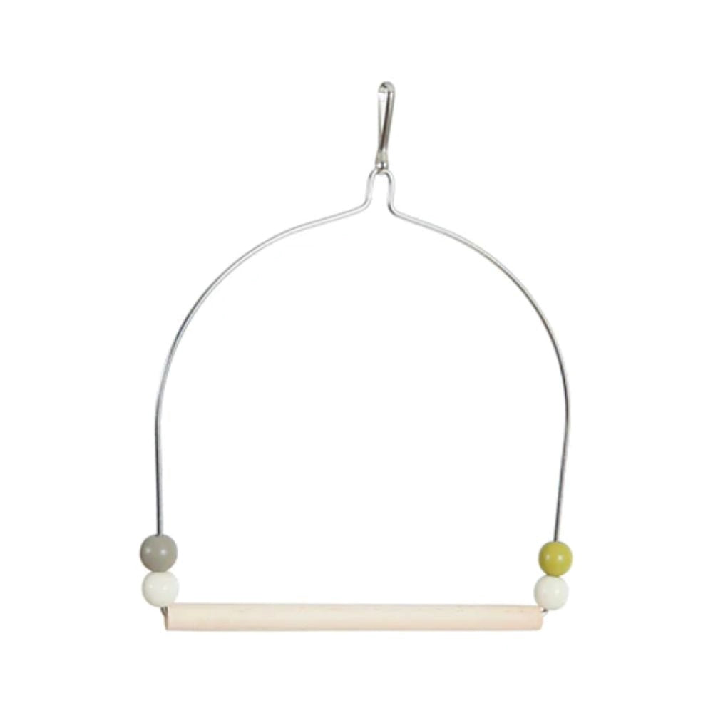 أرجوحة متينة مصنوعة من الخشب مع إطار حديدي قوي، مخصصة للطيور الصغيرة لتوفير حركة ترفيهية آمنة.