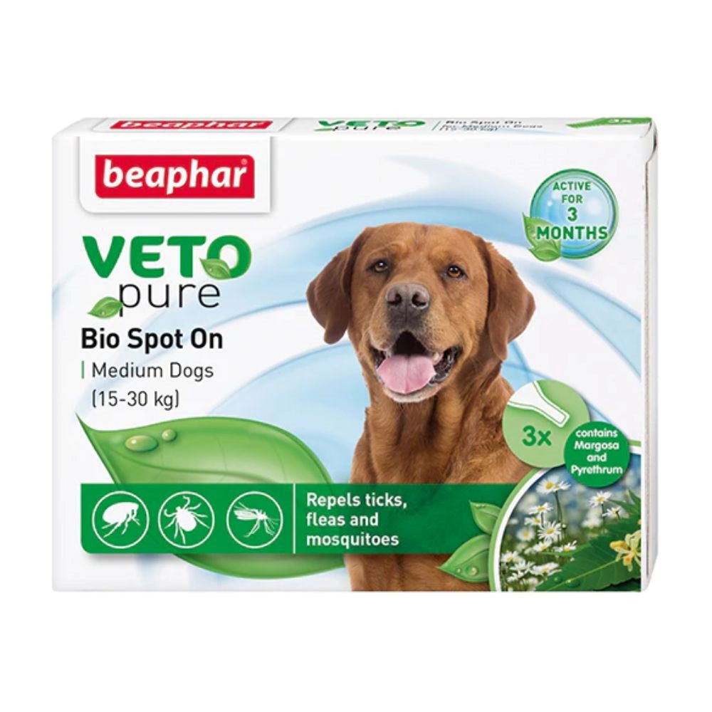 قطرات موضعية طبيعية للكلاب المتوسطة الحجم، تحميها من البراغيث والقراد بتركيبة أزهار آمنة وفعالة.