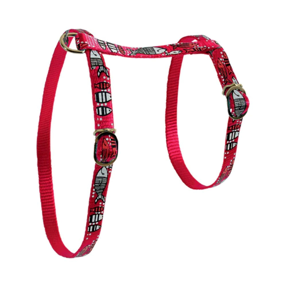 صدرية أنيقة بلون أحمر مع رسمة سمكة لطيفة، مصممة لتعطي القط مظهر مميز مع راحة في الحركة.