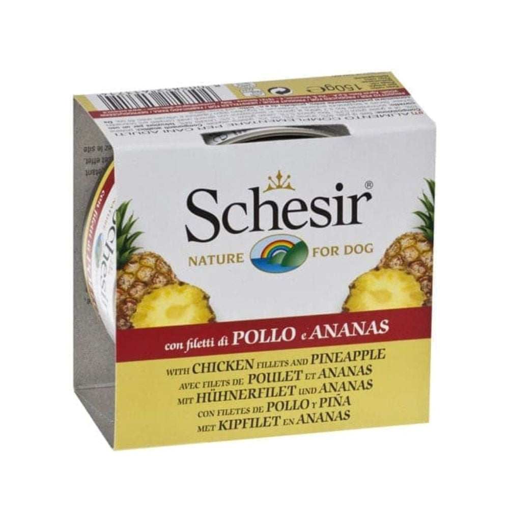 وجبة فاخرة تحتوي على فيليه دجاج طازج مع قطع أناناس منعشة في طبقة جيلي شهية، تعطي كلبك تغذية متوازنة وطعم مميز.