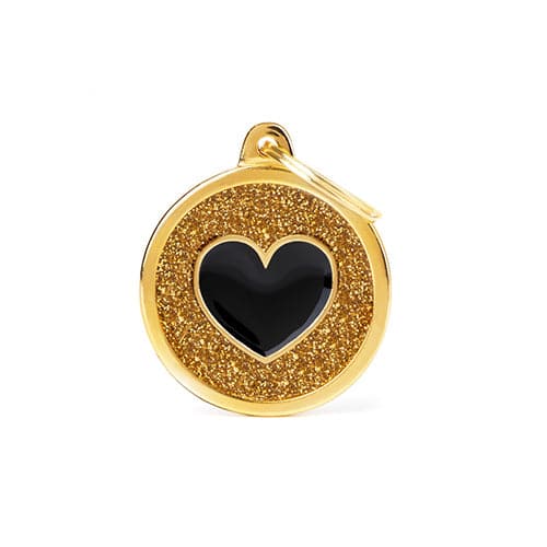 قلادة دائرية ذهبية كبيرة مع بريق شكل قلب أسود، تصميم فريد يجمع بين الفخامة والتميز. خامات عالية الجودة تعطي لمعان دائم.
