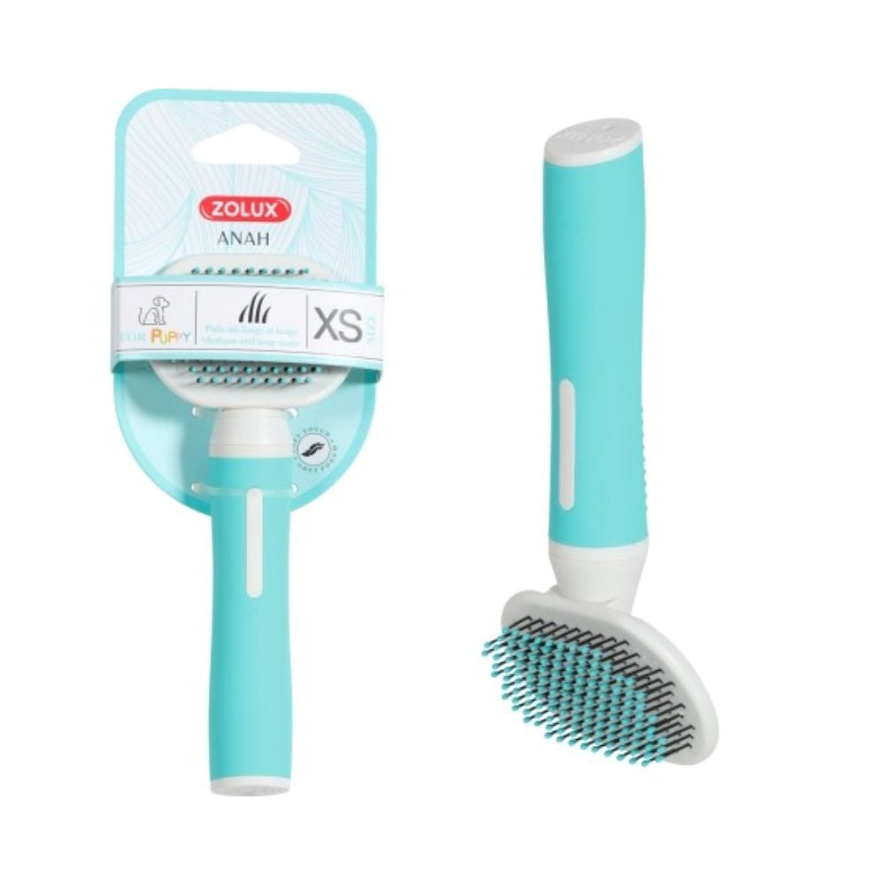 مشط صغير بكبسة مريحة، مثالي للكلاب الصغيرة اللي شعرها متوسط أو طويل، تصميم عملي ولونه جميل.