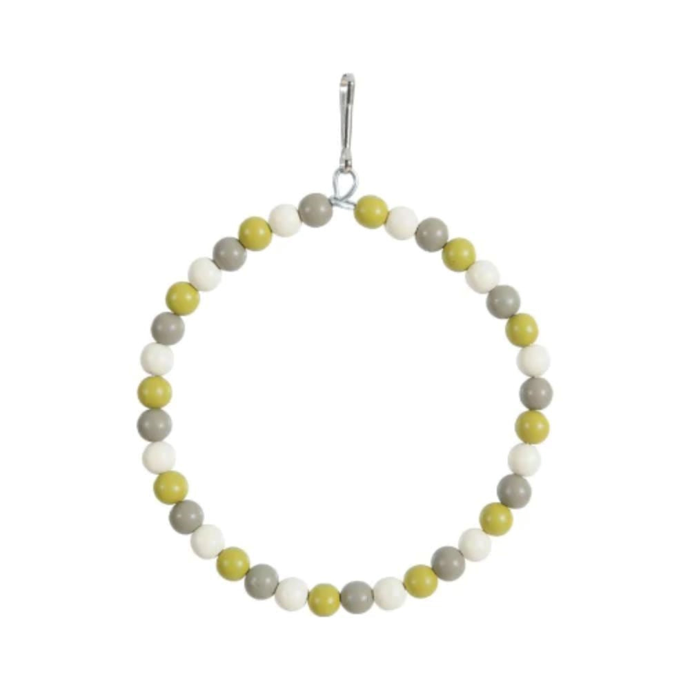 أرجوحة خفيفة بشكل قلادة ملوّنة، تخلي الطير يتحرك ويرتاح في نفس الوقت.