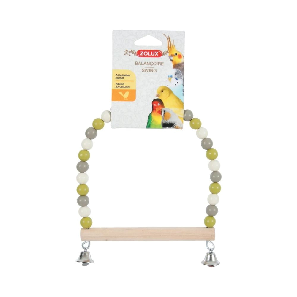 ديكور لطيف وأرجوحة للطيور فيها خرز ملون وغصن طبيعي، تحفّز الحركة وتضيف جو ممتع للقفص.