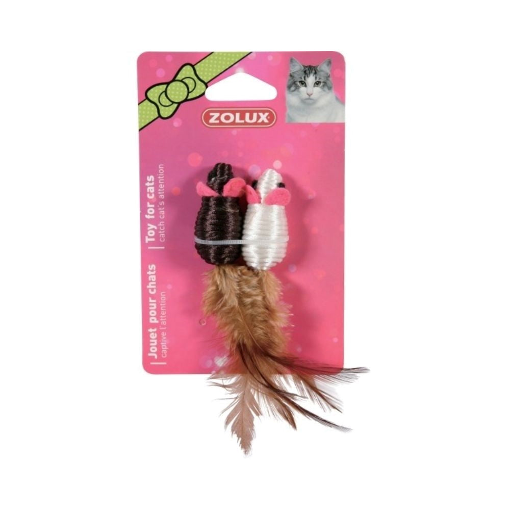 زوج ألعاب فارة صغيرة من قماش الكانفاس، مصممة مخصوص لحفز غريزة الصيد عند قطوتك. خفيفة، آمنة، وسهلة المسك، وتخلي القطط تقضي وقت طويل في اللعب والتفاعل بدون ملل.