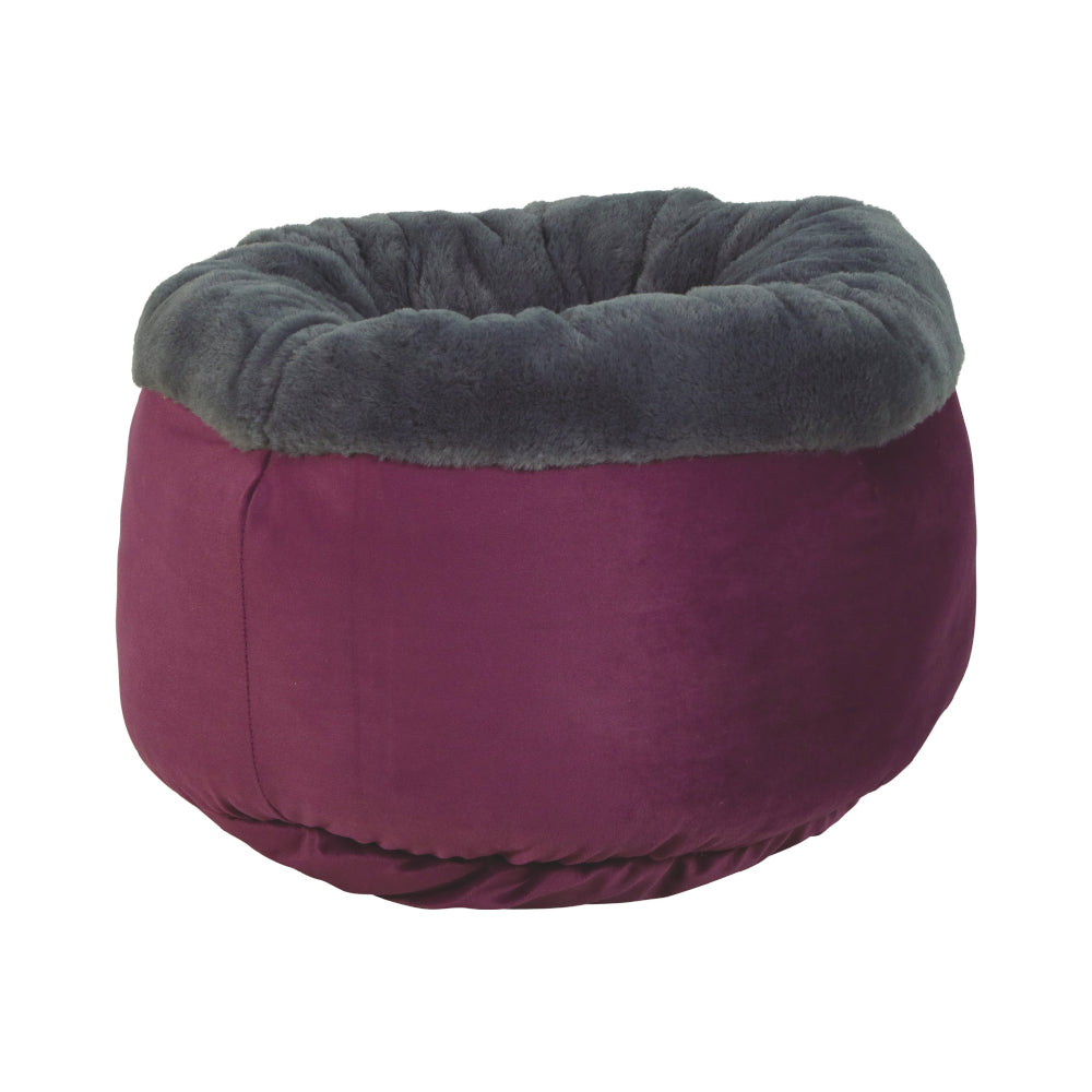 سرير مريح بلون عنابي فخم، يوفر دفء وراحة للكلاب أو القطط، تصميم ناعم وسهل التنظيف.