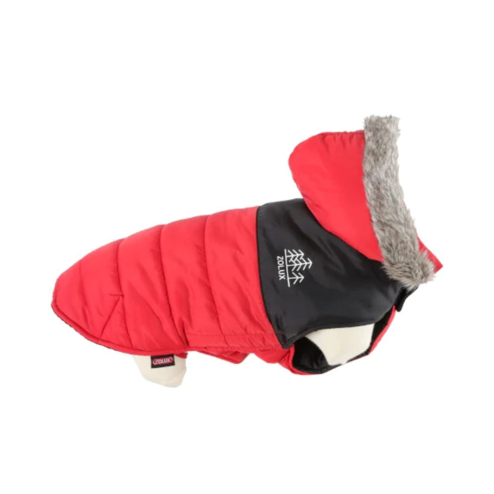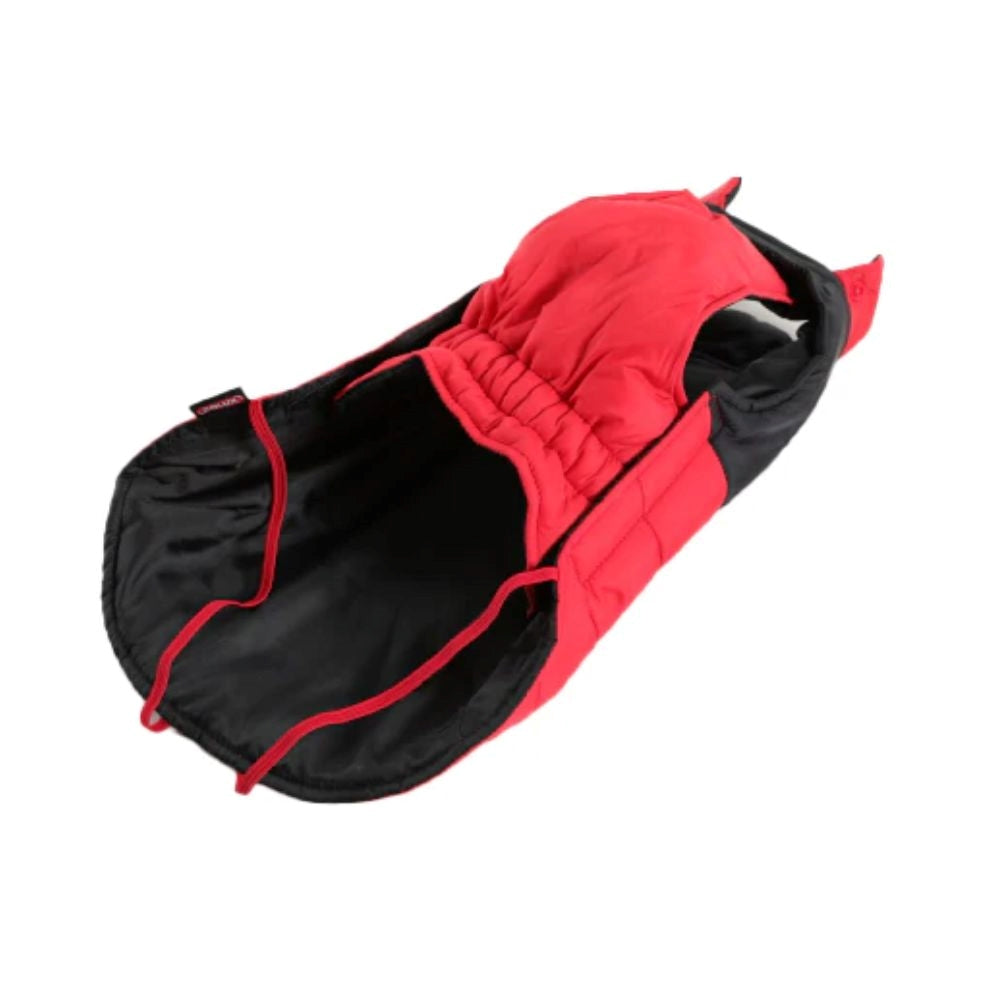 معطف أنيق يحمي حيوانك الأليف من البرد والمطر، مصنوع من بوليستر مقاوم للماء بلون أحمر جذاب.