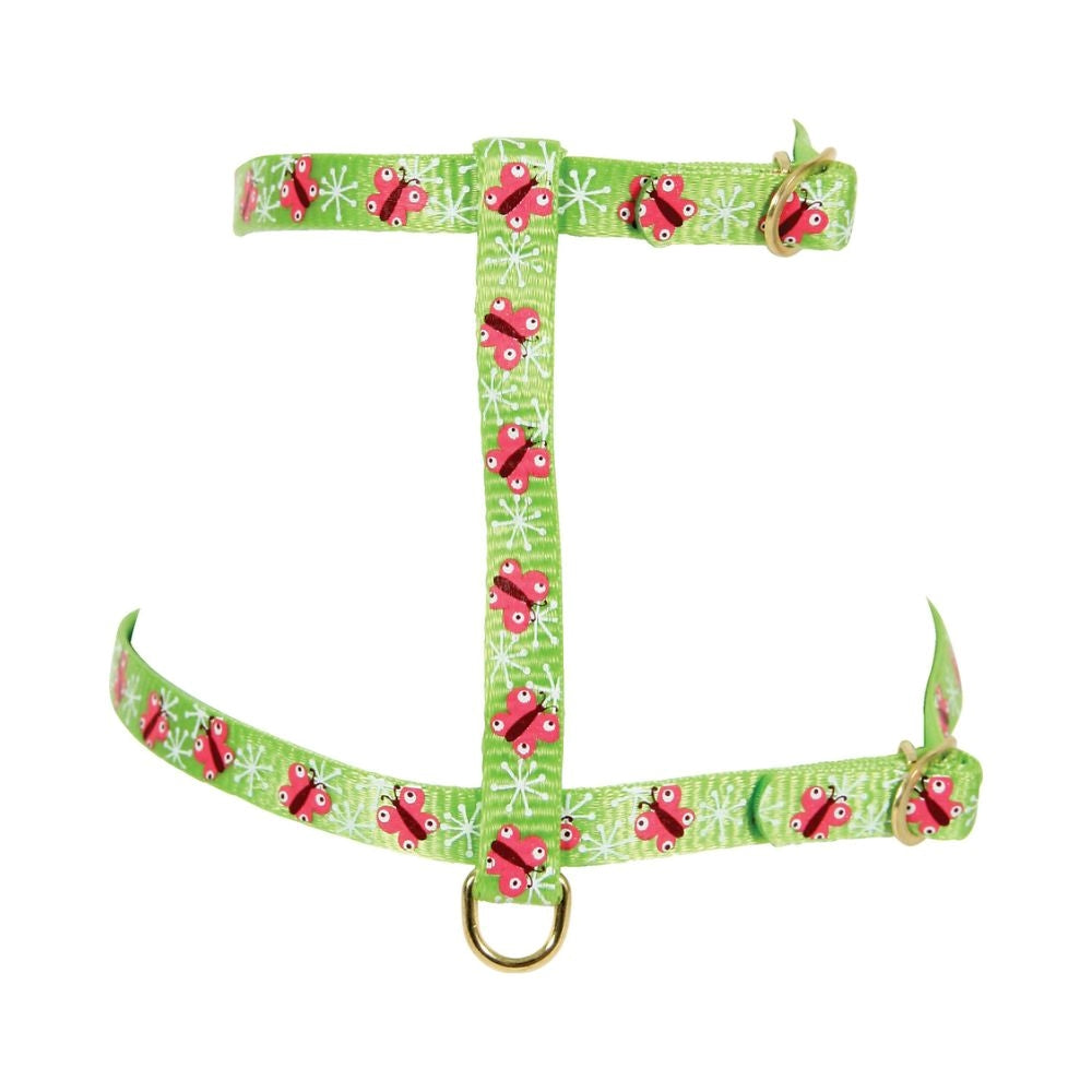 صدرية ناعمة ومرنة بنقشة فراشة، مثالية للقطط النشيطة اللي تحب تتمشى بأمان وراحة.