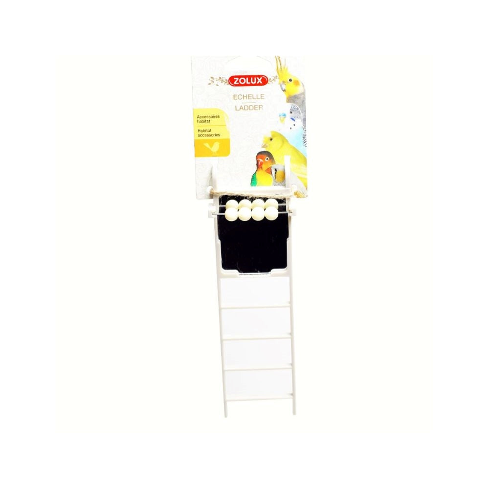 سلم ملوّن مرفق بمرآة صغيرة، يساعد على تنشيط الطائر وتحفيزه على الحركة والتسلية داخل القفص.