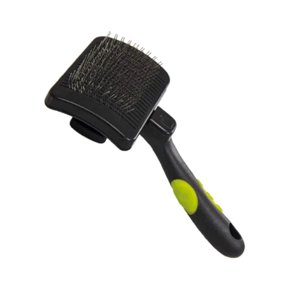 فرشاة ذكية بحجم صغير ومقبض مريح، تتميز بميزة السحب اللي تسهّل عليك تنظيف الشعر بعد التمشيط، مثالية للقطط والكلاب الصغيرة.