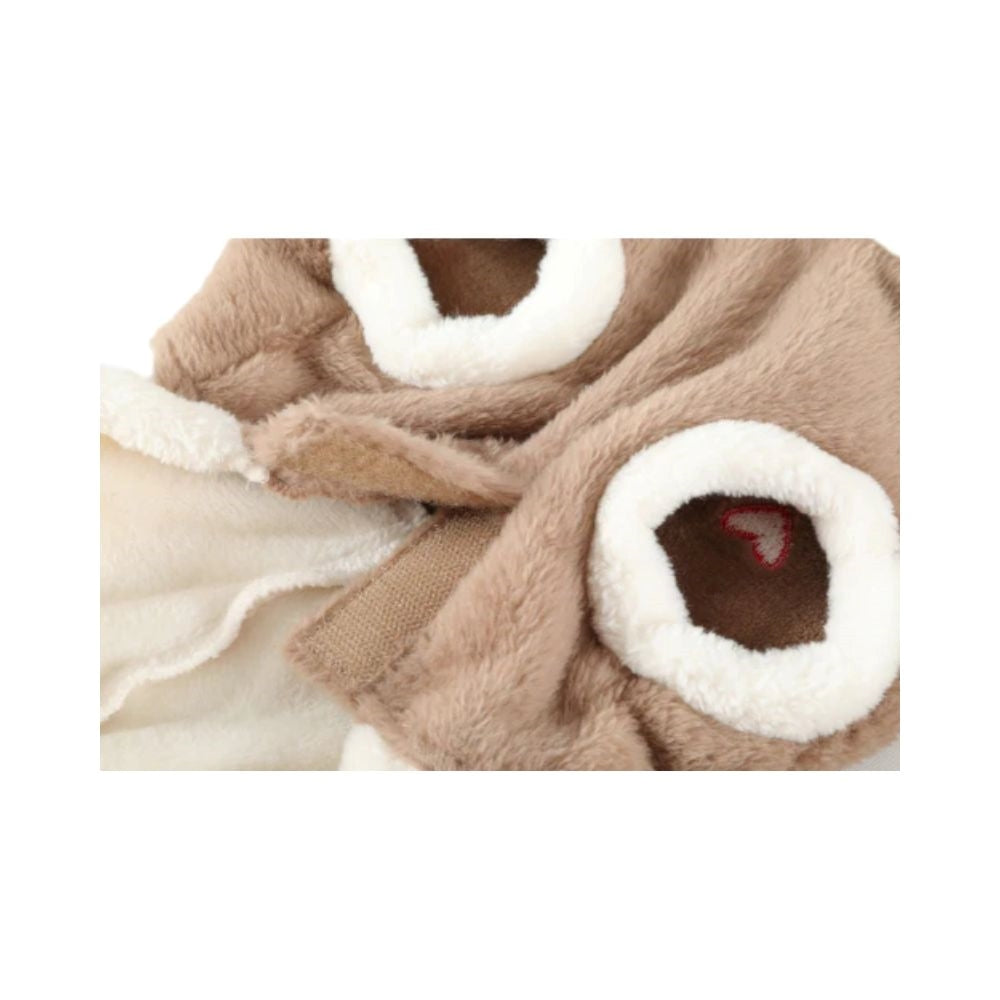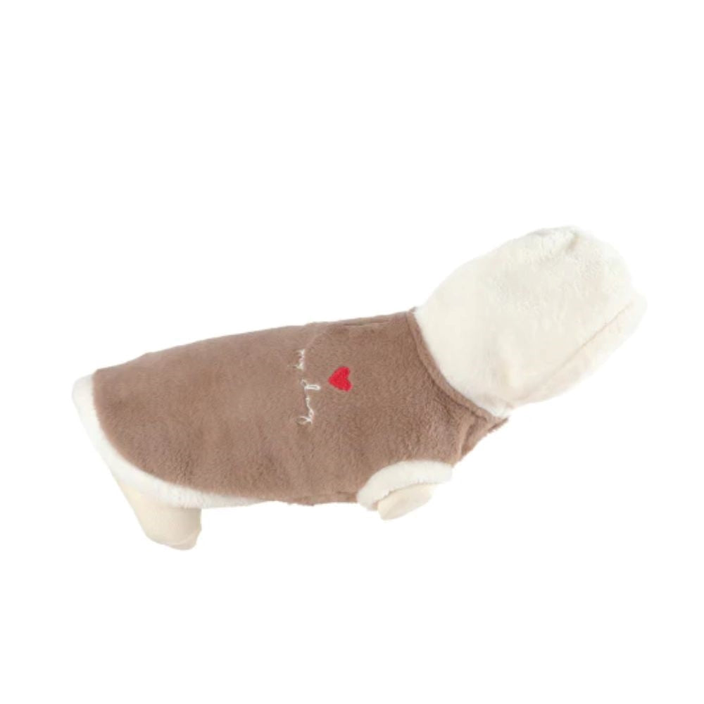 لبس دافي ولطيف بلون بني أنيق، يعطي حيوانك لمسة شتوية مميزة. القماش ناعم على الجسم وما يسبب أي تهيّج، والتصميم مناسب للحركة والراحة، سواء في البيت أو برا.